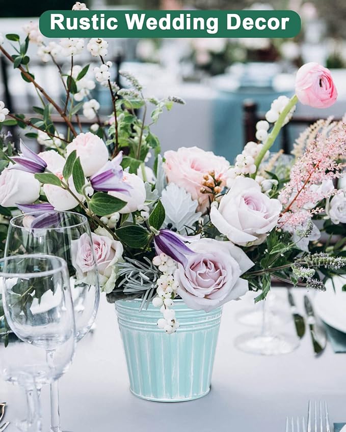 - 【Great for More Scenes】Metal bucket flower pot with rustic coating will not fade and crack, suits for outdoor & indoor, windowsill, living room, kitchen, balcony, garden and more. Used for succulents, herbs or other flowers. Rustic and vintage finish great for decorating your home or office, also used as a gift for landscape design lovers