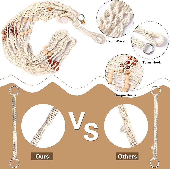 - Durable Cotton Rope Construction: Made from natural cotton rope for sturdy and long-lasting use.
