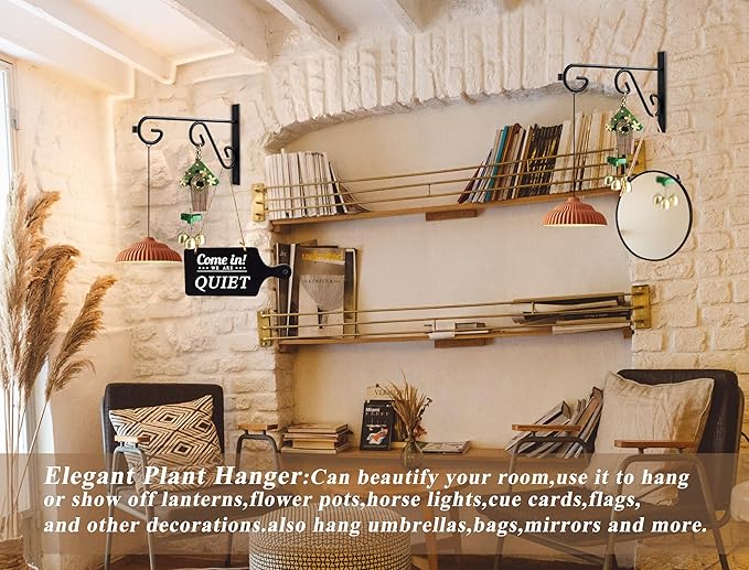 - Easy To Install:Each plant hook measures 9" X 5.8",set of 2.Suitable for both outdoor and indoor use,equipped with along with self-tapping screws and expansion screws,easily bite into wood or walls,making it more convenient and quick to use.