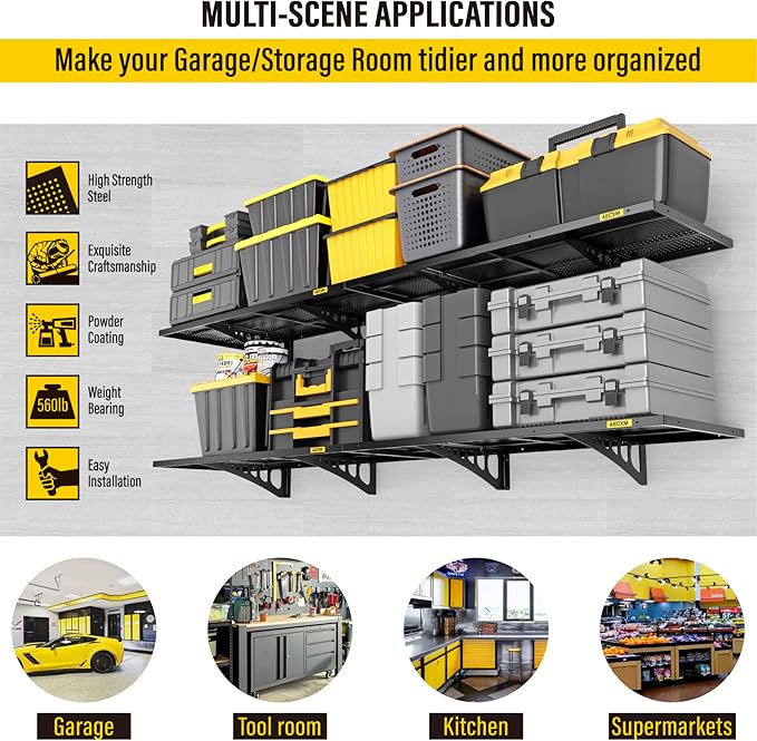 - Easy Installation: Includes high-quality screws and a detailed instruction manual, allowing one person to effortlessly complete the setup. This 1.64x4ft garage shelf wall mount offers ample storage space for your garage, kitchen, or pantry, keeping everything organized and within reach
