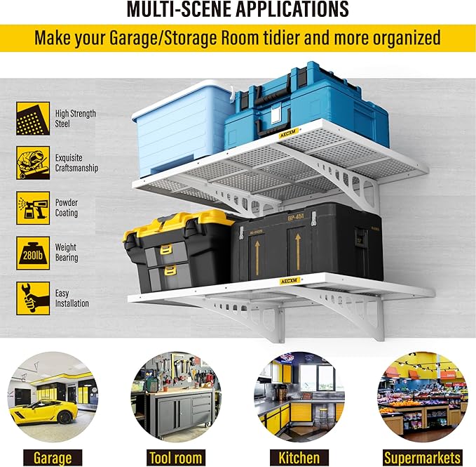 - Easy Installation: Includes high-quality screws and a detailed instruction manual, allowing one person to effortlessly complete the setup. This 2x3 garage shelf wall mount offers ample storage space for your garage, kitchen, or pantry, keeping everything organized and within reach