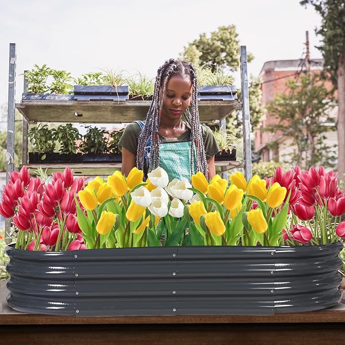 - Built to Last: Our raised garden beds outdoor are made of 0.8mm galvanized metal sheet, double-layer anti-corrosion galvanizing and oval structure design. Compared with the ordinary rectangular elevated garden bed with a thickness of 0.3mm, it will be the right choice for you.