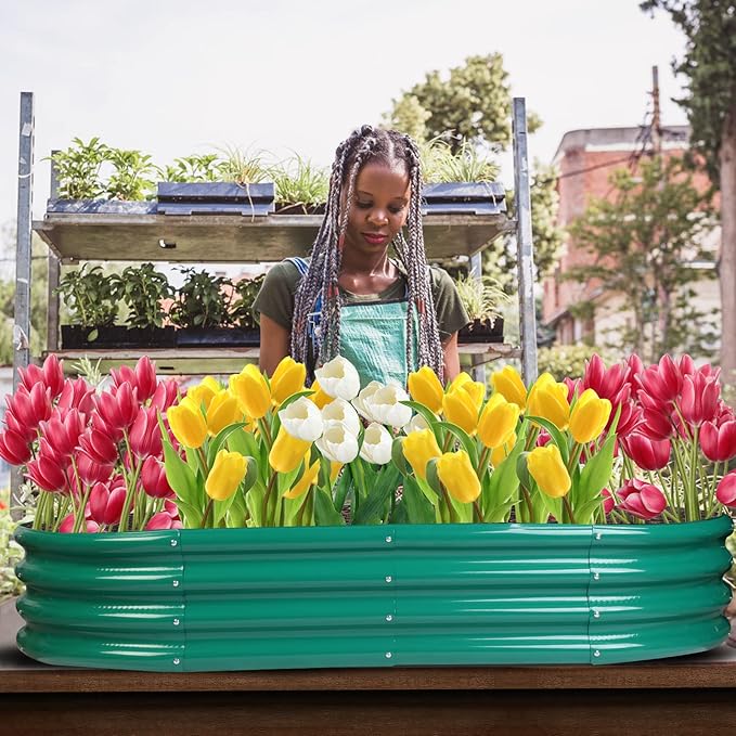 - Built to Last: Our raised garden beds outdoor are made of 0.8mm galvanized metal sheet, double-layer anti-corrosion galvanizing and oval structure design. Compared with the ordinary rectangular elevated garden bed with a thickness of 0.3mm, it will be the right choice for you.