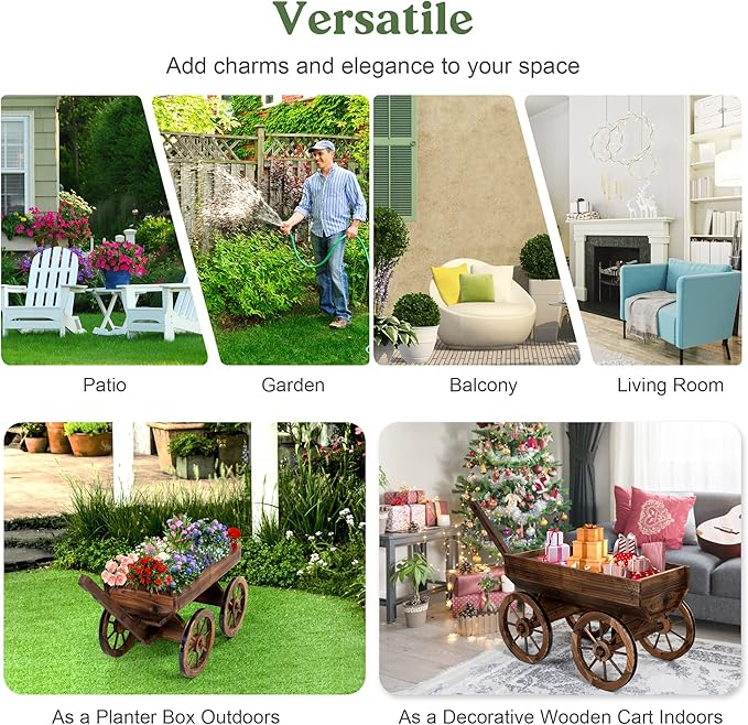 - 【Product】: Garden Cart Wooden Charcoal Pushcart, The product's width and length can safely accommodate your plants. It provides you with enough space to plant different flowers or plants. It perfectly protects the root of the flower, allowing it to grow healthily.