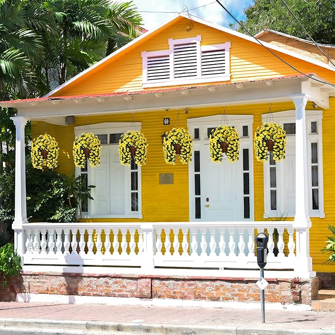 - QUALITY: The hanging flower pots and artificial daisy flowers were made of good quality material that don’t require maintenance after assembly. It’s UV resistance and won’t fade, sturdy enough for any weather. No watering needs. It looks full and beautiful all season