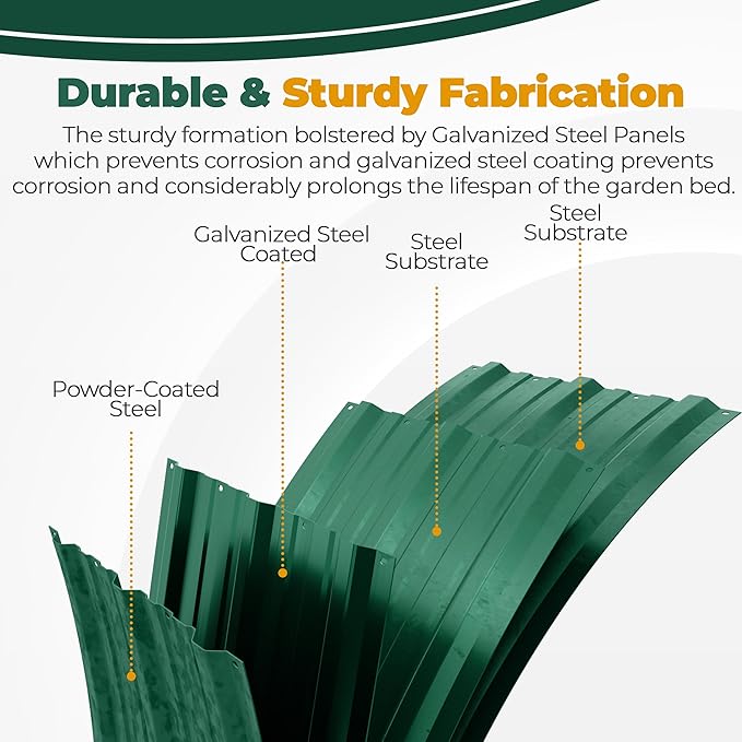 - Lightweight Galvanized Steel- The outdoor raised garden beds are made from lightweight galvanized steel, ensuring exceptional longevity and durability. Also, it prevents it from corrosion and rust, offering a long-lasting gardening solution. Moreover, the middle support strip provided exceptional strength to our lightweight Galvanized Raised Garden Bed.