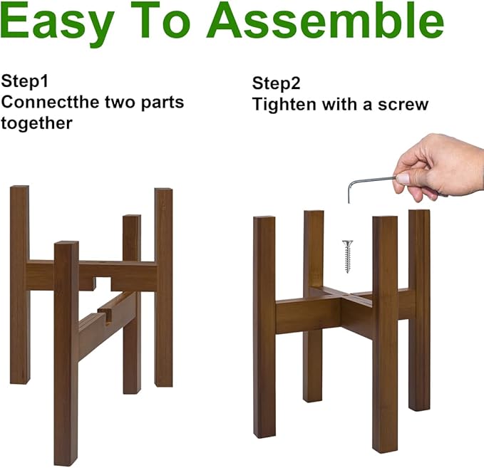 - 【Easy to Assemble】 Just slot the cross-combining two H-shaped main body brackets and tightening with screws.Package Included,Adjustable indoor plant stand x 1; Allen key x 1; Screw x 1; Anti-slip padx 4.