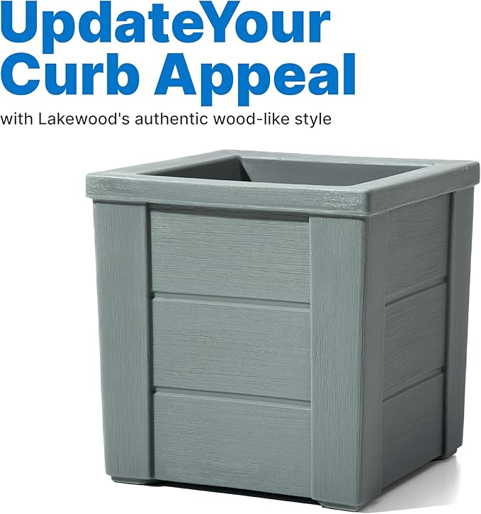Step2 Lakewood Square Planter, Large Planters for Outdoor Plants, Gardening and Flower Pot for Patio or Porch, Efficient Drainage, Durable Plastic, Sage Gray, 2-Pack