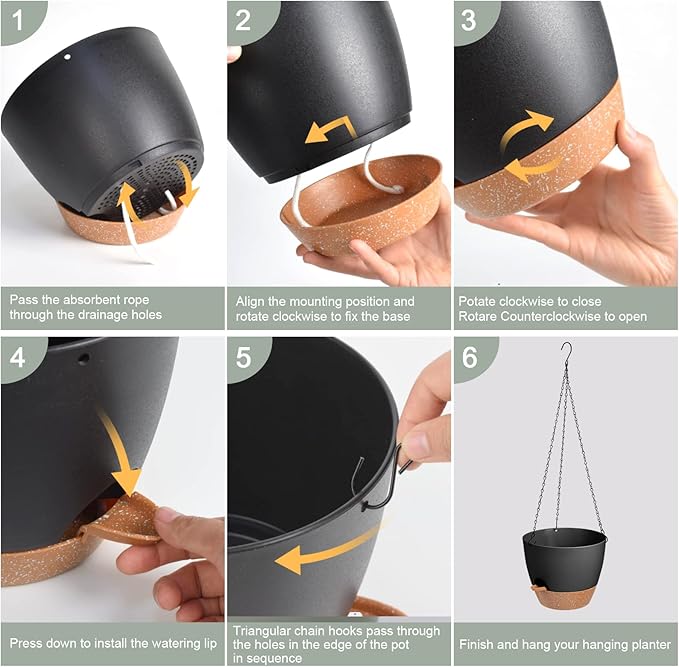 - Drainage Holes - The hanging plant holder multiple drainage holes can help you avoid over-watering and release excess water. Separate the potting soil from the water surface, enter the water through cotton rope perforations to keep the soil moist and the roots healthy. Self watering flower pots provides the best amount of water for your plants.