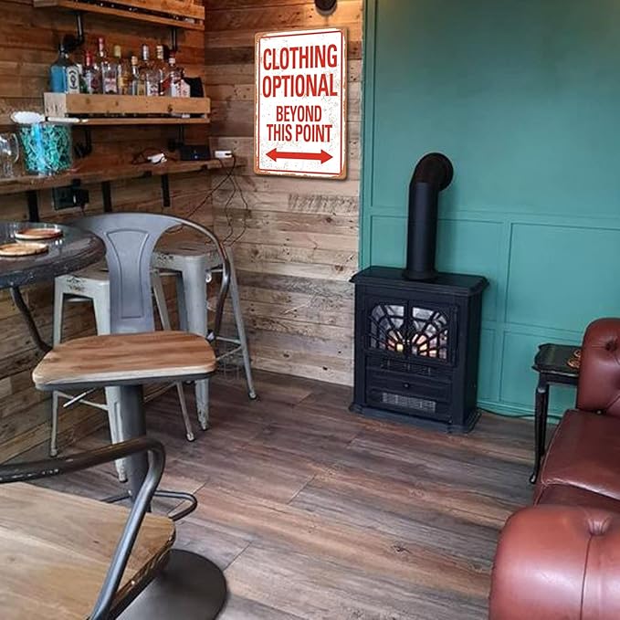 - WIDE RANGE OF APPLICATIOM: These vintage metal signs are not really rusty.( Clothing Optional Beyond This Point ) It is a fun and attractive decoration for your House, Farming, Home, Bar, Room, Bathroom, Kitchen, Office or Garage.