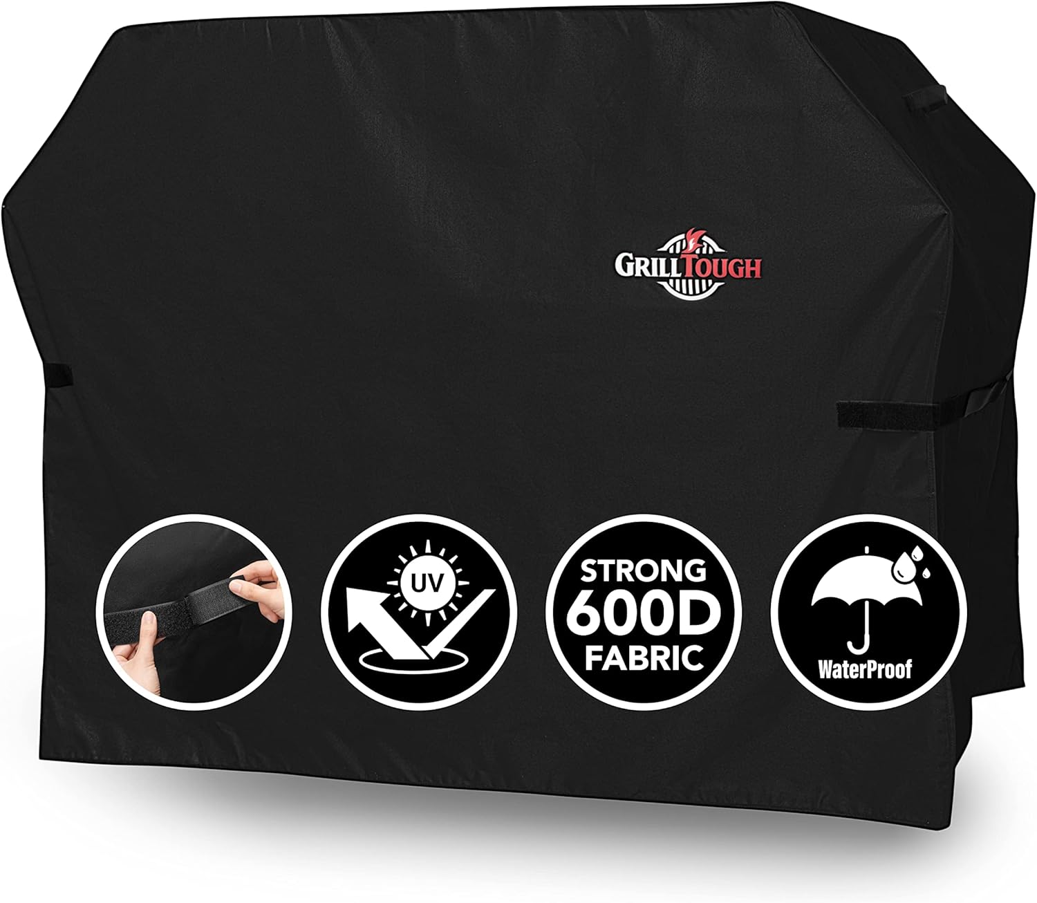 - HEAVY-DUTY PROTECTION - Our GrillTough grill cover is crafted with premium fade-resistant polyester fabric and a waterproof vinyl coating, ensuring long-lasting durability against UV rays, rain, tearing, and cold cracking.