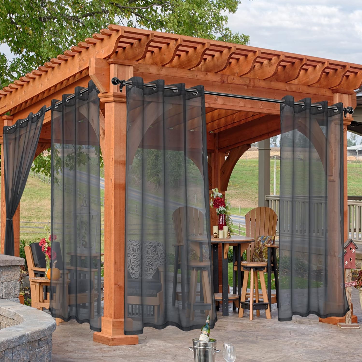 HolidayIdeas Outdoor Sheer Curtains for Patio Waterproof, 4 Panels - 54 x 108 Inch - Grey Light Filtering Voile Outside Curtains Grommet Drapes for Front Porch, Gazebo, Pergola, Backyard