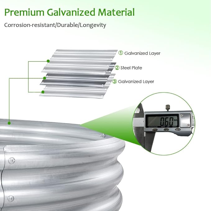 - DURABLE & STABLE: Made of premium galvanized steel sheet features long-lasting use during kinds of weather, more stable and durable than wooden planters. The wave stripe and reinforced corner enhance the structure and expands life span of garden bed. 17.3 inch tall design brings more comfortable gardening experience
