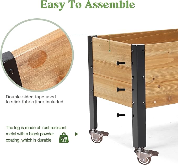 - 【Material】Planter box with wheel that can be locked. It is made of natural fir wood, which can withstand rain corrosion well. which is very environmentally friendly.Instead of recycled wood, use metal legs for support, which are stronger and more durable.
