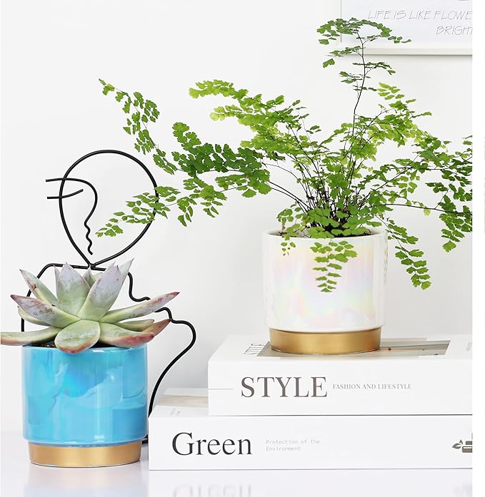 - Rainbow Pearlescent Glazed Design With Drain Holes: The rich color of these plant pots indoor is covered with a rainbow look. Large drain holes are good for draining and are perfect for home decoration.