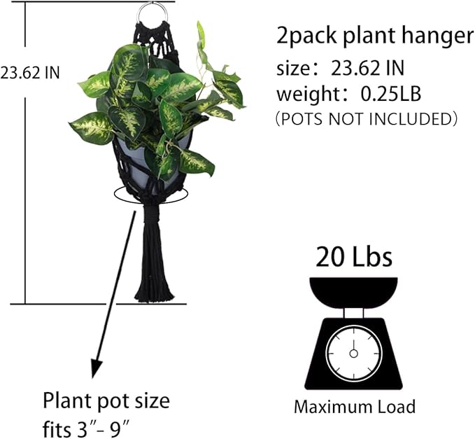 - WHAT IS IN THE PACKAGE - You can get 2pcs cute plant hangers and hooks that fit pots with a diameter of 3"-9" (pots and plants are not included),It keeps your plants away from your pet and saves space
