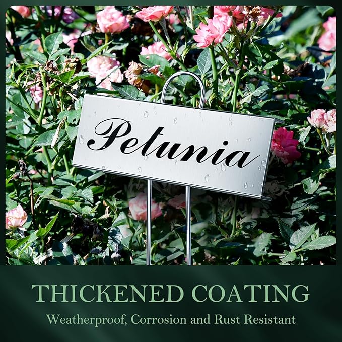 - Attractive Design: Not only are these plant labels practical, but they also add a touch of elegance to your garden. The sleek metal design complements any outdoor space, giving it a polished and organized look. Use these markers to create a well-organized garden or to add a decorative touch to your potted plants.