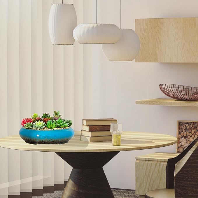 - Stylish Design: Round shape and blue glaze add a modern, artistic touch to any space.