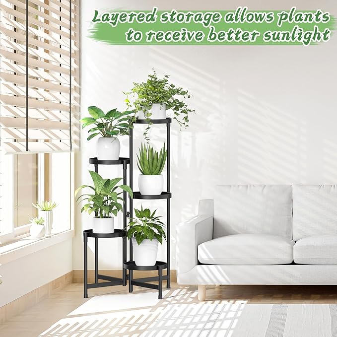 - 【CREATIVE FOLDABLE DESIGN】Multi-layer interlocking space design provides a comfortable growth space for plants and ensures that each plant gets enough sunlight to grow. This metal plant stand is perfect for living room, bedroom, office, hallway, balcony, terrace and garden to decorate your home
