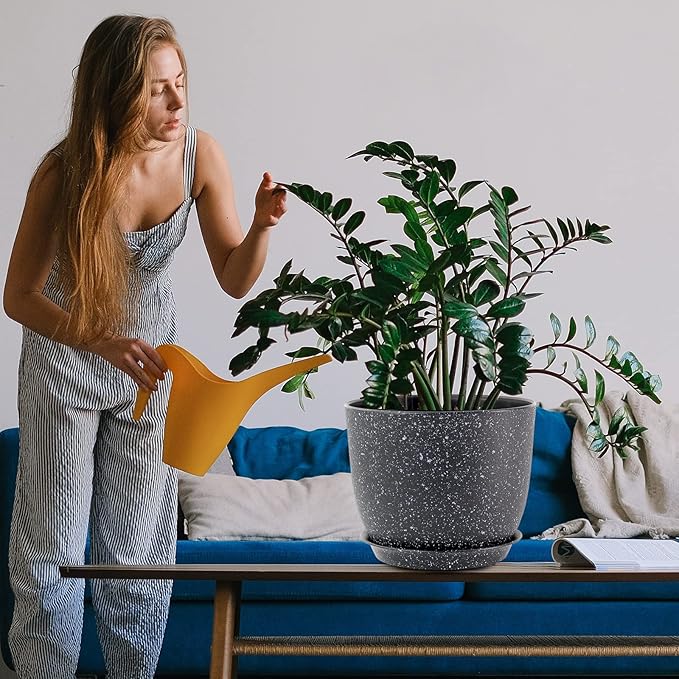12/10/9 Large Modern Plant Pots, Plastic Planters with Drainage Holes and Saucers for Indoor Outdoor Plants Flowers, Black Speckles