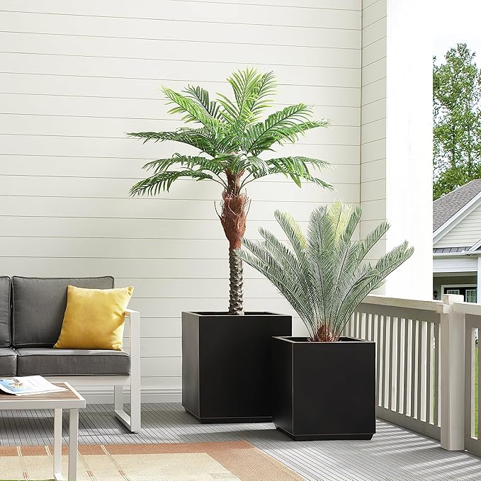 Metallic Heavy Cube Planter Box, No Assemble, Seamless Large Square Planter for Trees, Plants and Flowers 21”Lx21”Wx24”H 35Pounds Black with Hand Brushed Gold Rim