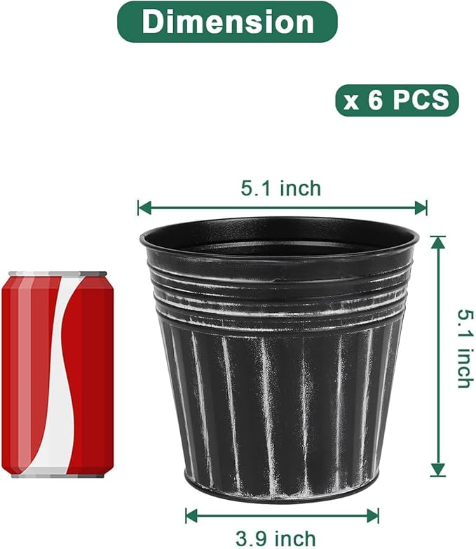 - 【Size of Metal Pots】There are 6pcs metal planters in a package, Topper opening diameter 5.1 inch, bottom diameter 3.9 inch, barrel high 5.1 inch.