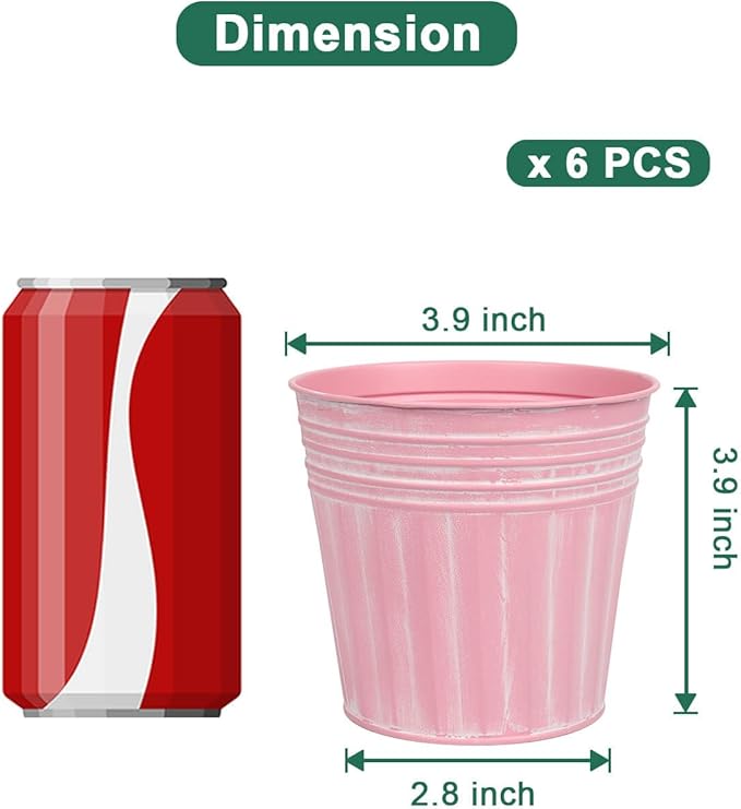 - 【Size of Metal Pots】There are 6pcs metal planters in a package, Topper opening diameter 3.9 inch, bottom diameter 2.8 inch, barrel high 3.9 inch.