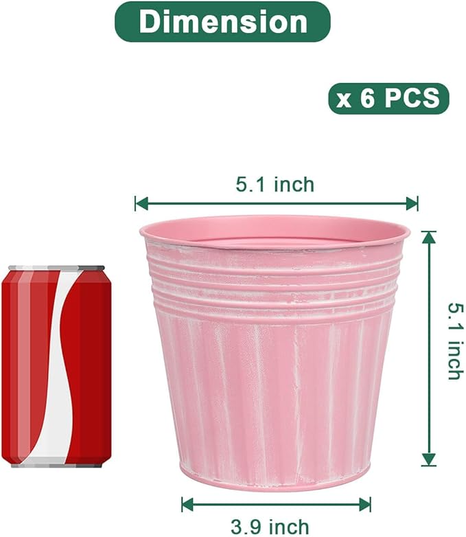 vensovo 5 Inches Pink Metal Rustic Flower Pots - 6 Pcs Small Galvanized Planters with Drainage Hole and Rubber Plug, Rustproof Tin Bucket Plant Pot Farmhouse Vintage Style for Decor