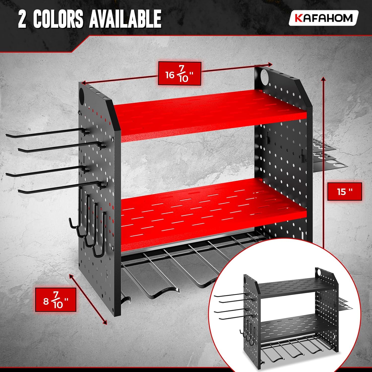 - QUALITY FEATURES: The KAFAHOM power tool organizer showcases outstanding craftsmanship in the choice of materials, ensuring durability and longevity. Its robust structural design provides ample support and stability, making it an ideal storage solution for heavy power tools and multiple pieces of equipment. These characteristics combine to make this tool rack an exceptional addition to any workspace.