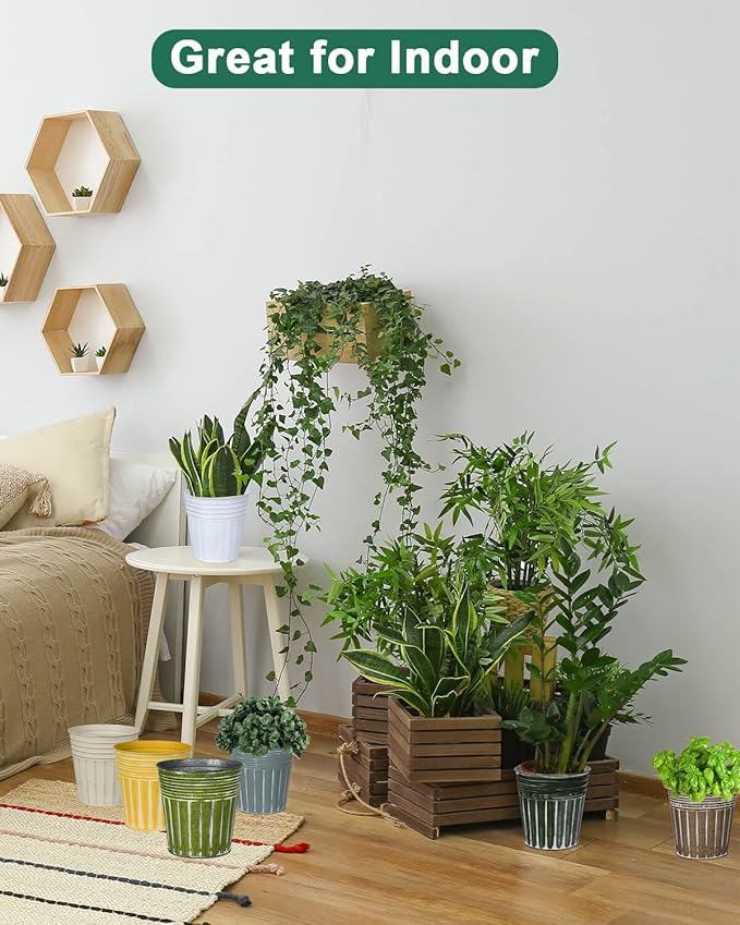 - 【Drain Hole with Rubber Plug】The yellow green metal pots for plants have a drain hole at the bottom for drainage, green flower pot coming with a rubber stopper for avoiding water leakage. Great for planting or storing household items.