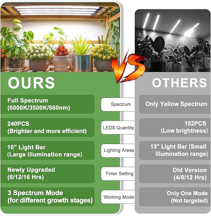 - Upgraded Timer: Our plant light timer has been upgraded to 6H, 12H, 16H to ensure the plants have enough time to do photosynthesis to grow faster and better; It will auto turn on or off every day, with no need for more manual operation