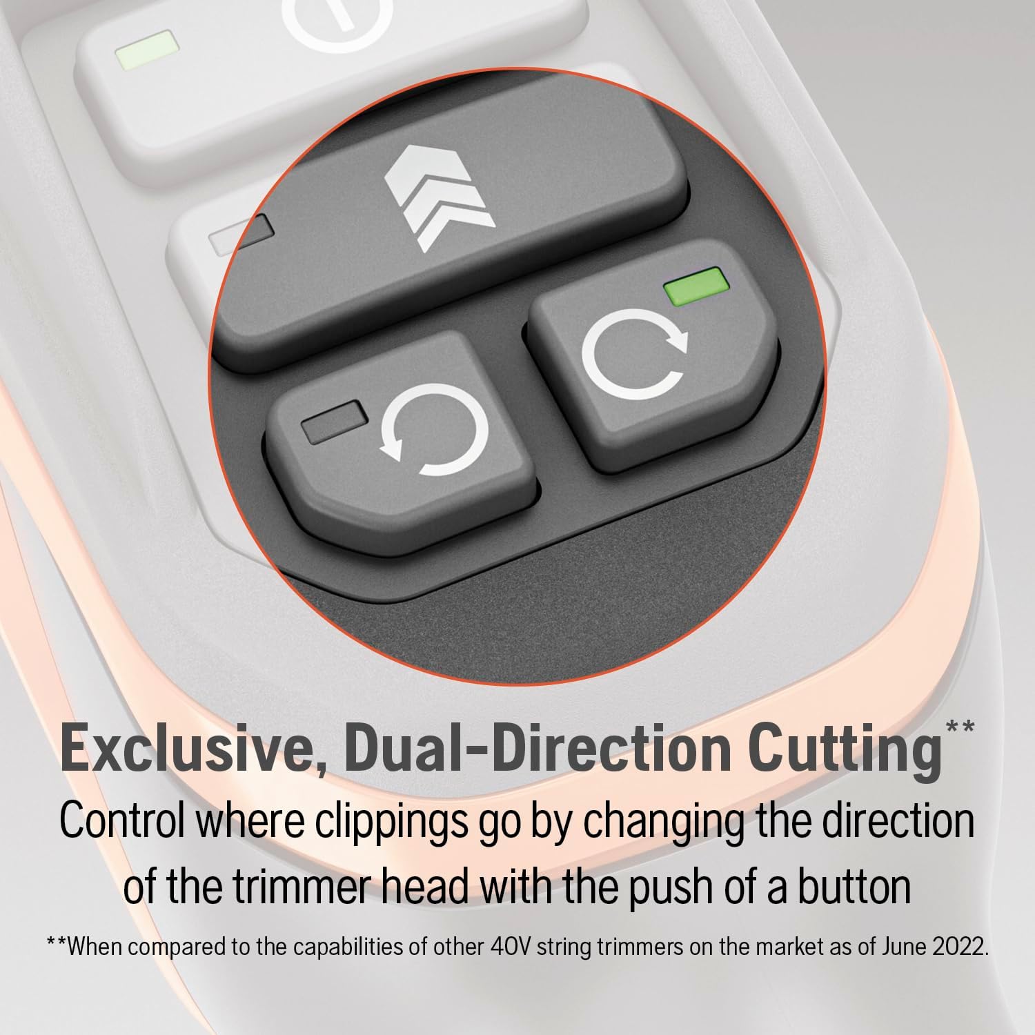 - DUAL-DIRECTION TRIMMER HEAD: Easily change the cutting direction of this battery string trimmer with the Dual-Direction trimmer head, designed to help you keep clippings off garden beds and hardscapes
