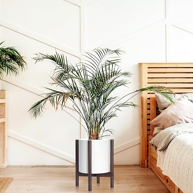 - A Complete Set: Minimalist plastic planter, combined with a sculptural, solid wood stand that match perfectly together and looks great in any home.