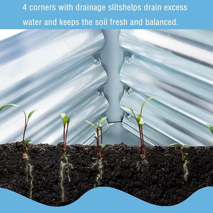 - 【Easy to Assembly and Multipurpose】Raised planter boxes outdoor with a complete set of screws and pre-drilled holes, we just connect the metal plates with screws, and it can be installed quickly and easily. raised garden bed with legs it can provide ample growing space for plants. We can use it to grow vegetables, flowers, herbs, Plants etc.., 4 corners with drainage slitshelps drain excess water and keeps the soil fresh and balanced.