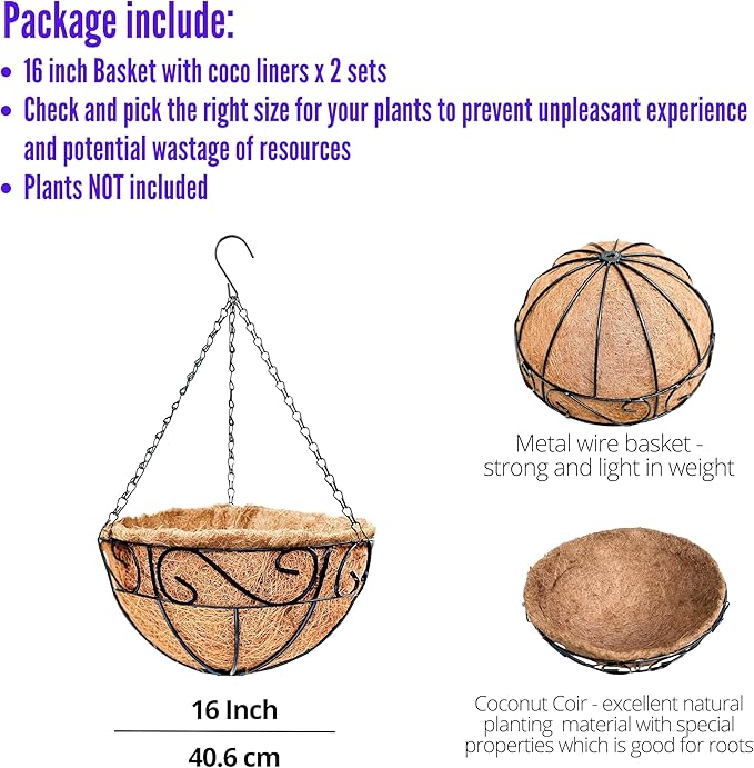 - SHOP WITH CONFIDENCE: USPTO DESIGN PATENT PENDING. Each hanging pot with coco coir liner is carefully inspected before shipping to ensure quality. If you encounter any issues or have a change of mind, you can return the baskets for a refund or exchange for a new set.