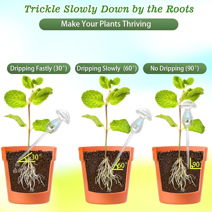 - Make Your Plants Thriving: The automatic plant waterer watering your plants trickle slowly down by the roots, no worry about over or under plant watering, letting the plants drink when they want.