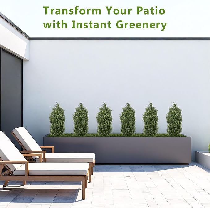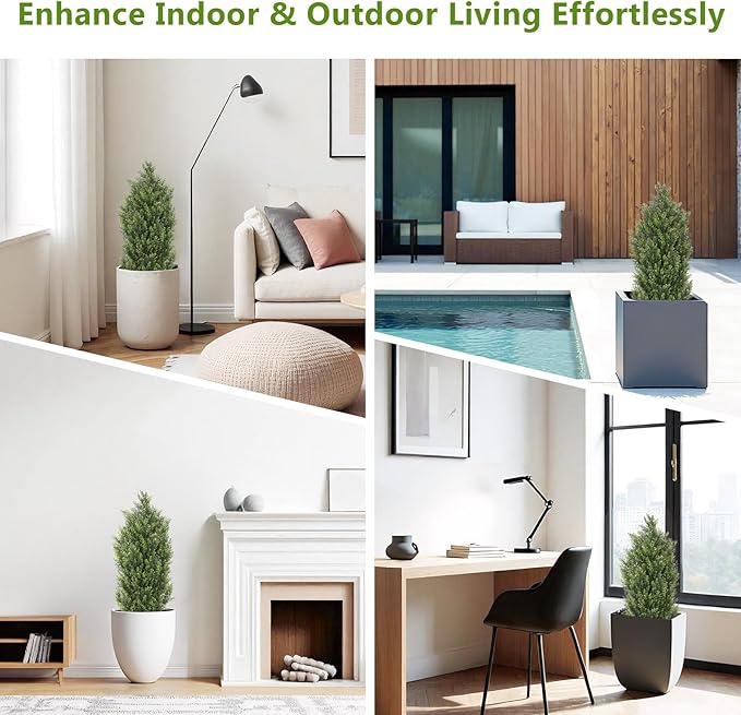 - 【REALISTIC & EVERGREEN LOOK】These cedar topiary trees artificial outdoor feature dense foliage with a natural, sculpted shape that mimics real evergreen bushes. Ideal for outdoor planters, entryways, or patio corners, they offer lifelike greenery that stays vibrant through all seasons. (Note: Branches arrive compressed. Gently shape them by hand for best results.)