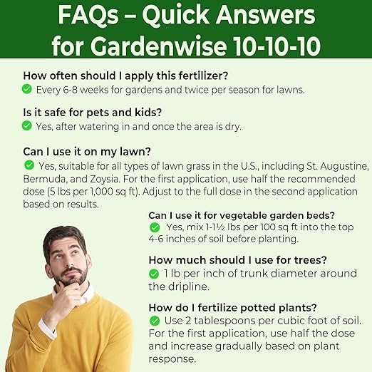- 🌿 Balanced 10-10-10 Granular Fertilizer for Outdoor & Indoor Plants: All-purpose plant food with 10% Nitrogen, 10% Phosphorus, and 10% Potassium. Perfect for outdoor vegetable gardens, fruit trees, evergreens, shrubs, lawns, and flowers. Also great for potted plants and indoor gardening. One solution for all your plant needs!