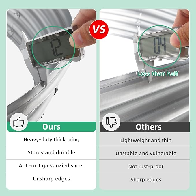 - 【1.2mm Heavy-duty Thickening Galvanized Sheet】: Gartist outdoor raised garden bed is made of Q195 double-side galvanized steel sheet. Compared with ordinary galvanized sheet, the 1.2mm thickened galvanized sheet is more durable and sturdy, not easy to deform, and has improved anti-corrosion and rust resistance. It is more resistant to high temperatures and freezes, making it very suitable for outdoor use.