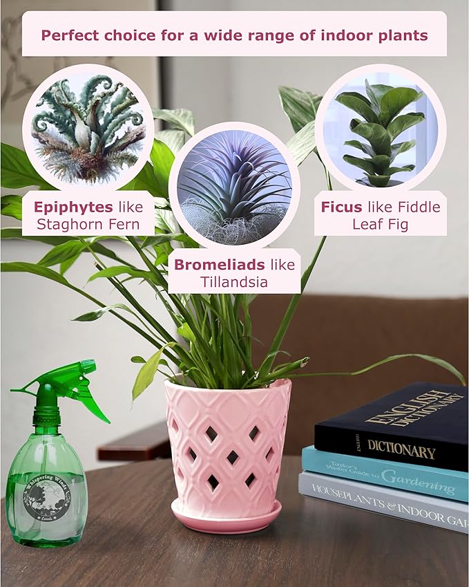 - 💧Excess Water Management: The collection plate streamlines watering, prevents overwatering, root rot, and infections, promoting healthier, thriving plants while aiding our ceramic orchid pots in naturally regulating temperature and moisture levels