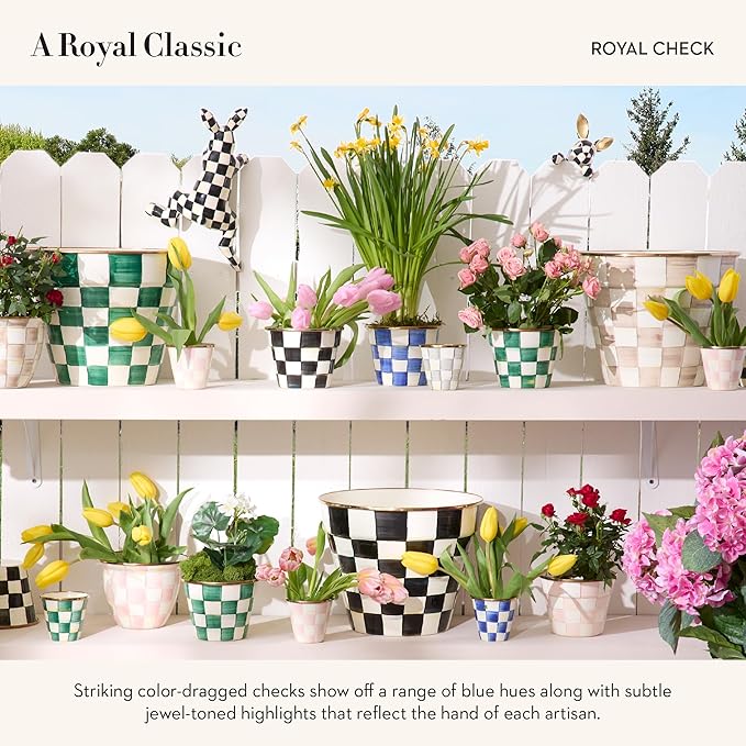 - ELEGANT PLANTER DECOR: This small plant pot features our hand-painted Royal Check pattern with blue-and-white checks in a range of blue hues that will add something regal to any decorative theme. Use it to create an indoor garden or an outdoor pot centerpiece on your patio table.