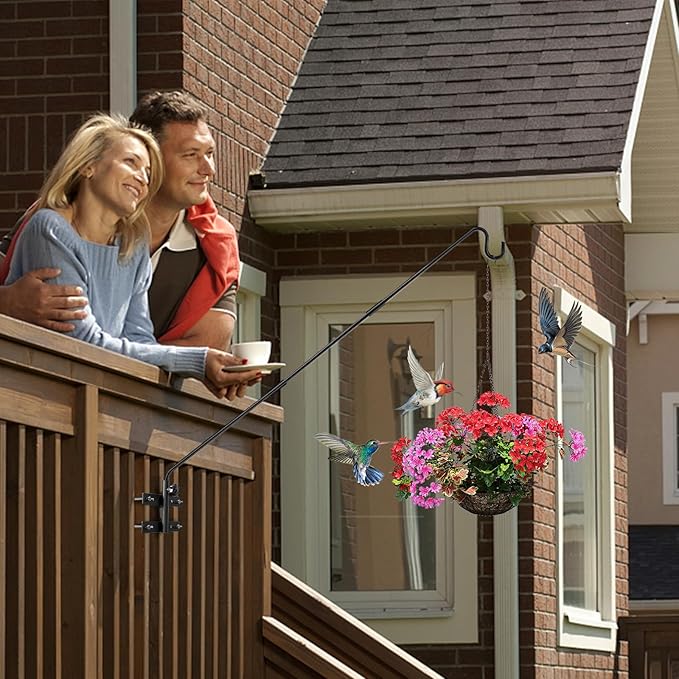 - EASY INSTALLATION FOR DECK PLANT HANGER :You install hummingbird feeder hangers for outdoors to deck and fence railings with the screws provided. Just connect 2 or 3 part of our deck hook poles with 2 mini screws and allen wrench, so you can get a 29 inch or 43 inch metal shepherds hook for deck railing .Note:this clamp do not fit the 4" rails