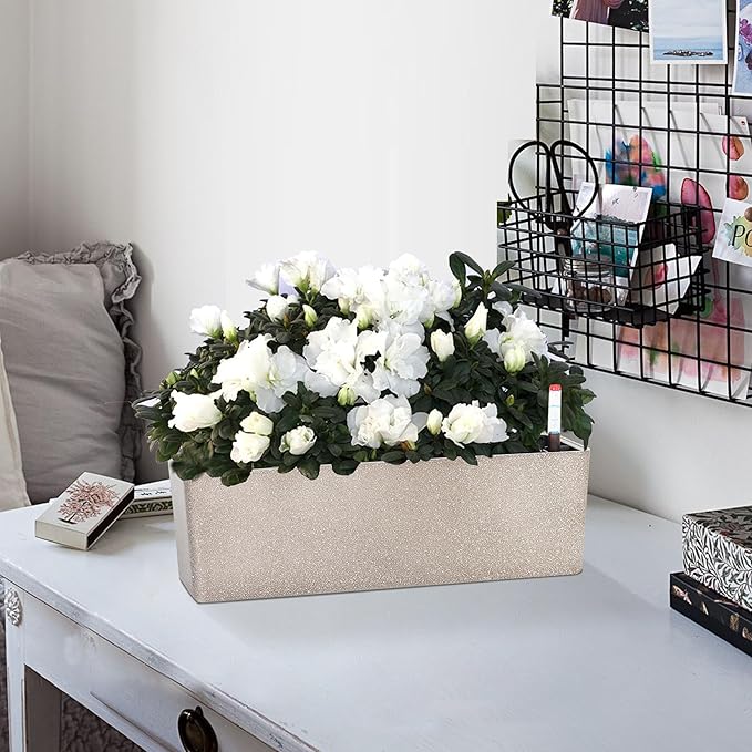 GardenBasix Elongated Self Watering Planter Pots 2-Pack Window Box 5.5 x 16 inch Indoor Home Garden Modern Decorative Pot for All House Plants Flowers Herbs (Coffee,2)