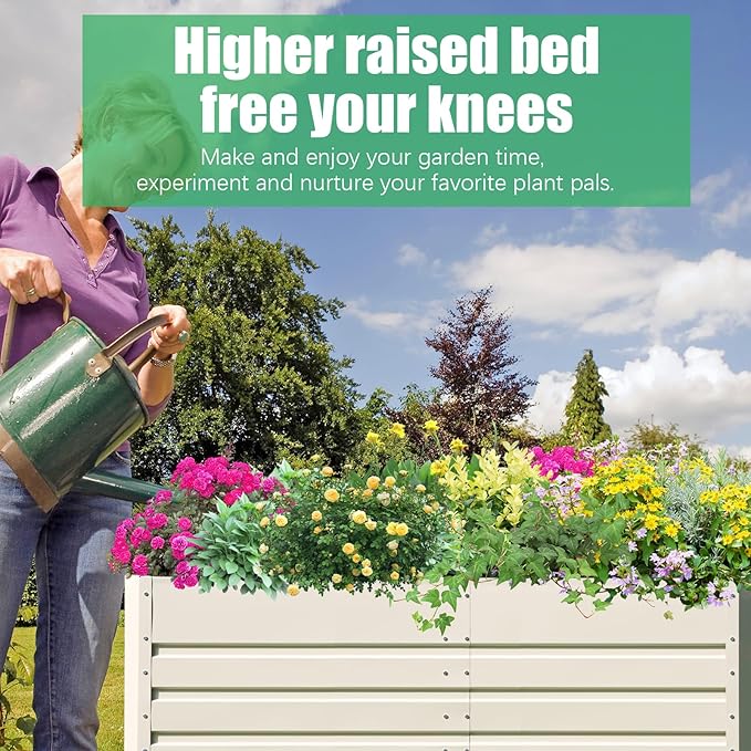 SnugNiture Galvanized Raised Garden Bed 6x3x2FT Outdoor Large Metal Planter Box Steel Kit for Planting Vegetables, Flowers, Beige White