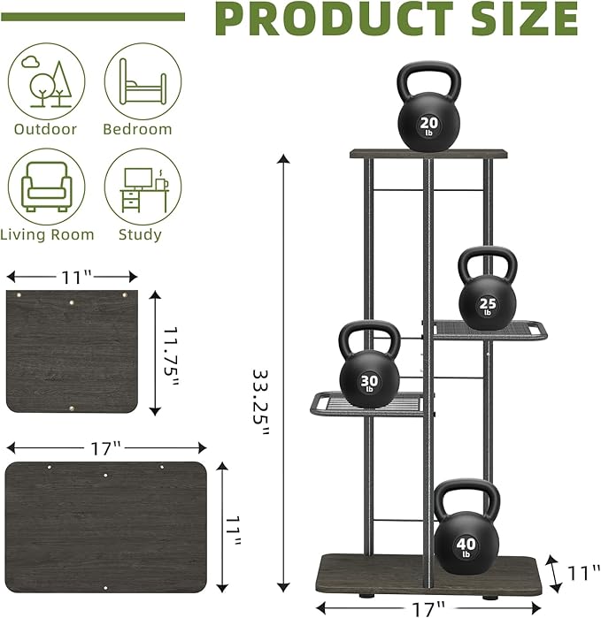 - 2.[Sturdy and Durable】This plant stand adopts a unique 4-tier layered design for even load bearing and not easy to deform, the thickened metal tube can withstand up to 150lbs, and its own feet can protect the floor well.
