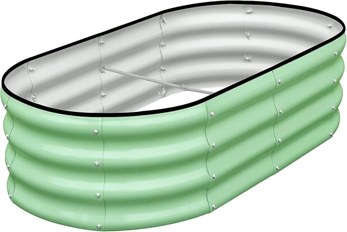 SnugNiture Galvanized Raised Garden Bed, 4x2x1ft Oval Metal Planter Box for Planting Outdoor Plants Vegetables