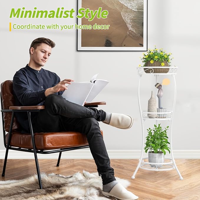 - 【Attractive Metal Tall Plant Stand】: Consists of wrought iron inspired design trays and curved lines. Elegant and minimalist appearance coordinate with all your home decor styles and definitely turn your home or garden into a bright and modern space.