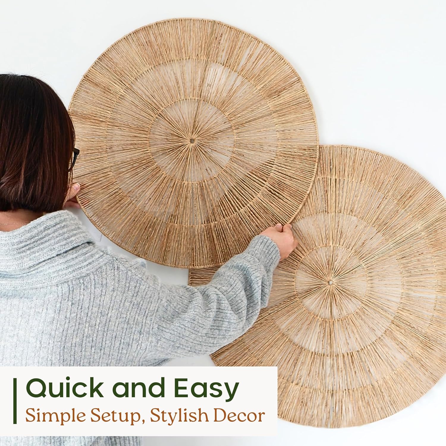 - ππππ ππππππππππππ - Simply use a hammer and nails or sturdy wall hooks to hang. Arrange the jute baskets in your preferred layout, hold them against the wall to find the ideal position, and secure them with nails or hooks for a hassle-free setup.