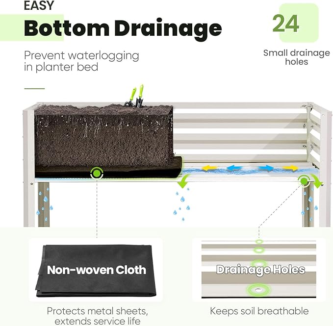- 【Effortless Drainage】Ample drainage holes allow plant roots to breathe and drain properly. Comes with a non-woven fabric liner to ensure efficient drainage while containing soil, enabling worry-free indoor and outdoor use. The elevated garden bed is ideal for garden, backyard, balcony, and deck.