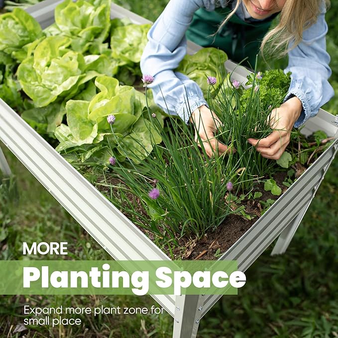 - 【Height: 30", Ergonomic Design】The galvanized raised garden bed stands at a comfortable height of 30 inches, eliminating the need to bend or kneel and sparing your back and knees from strain. It makes a perfect gift for relatives, friends, and anyone passionate about gardening.